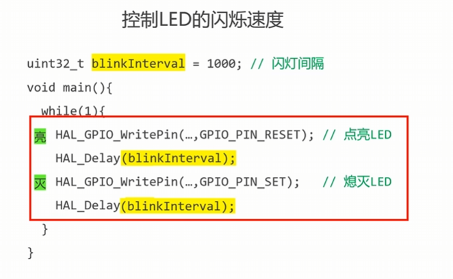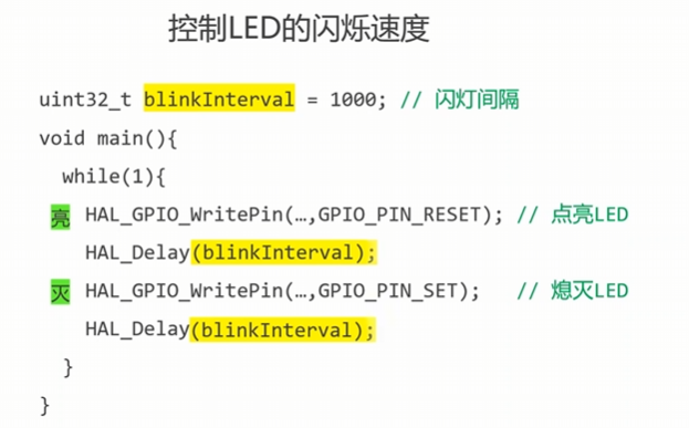 通过控制闪灯间隔,实现LED的快、中、慢闪: