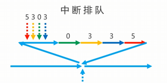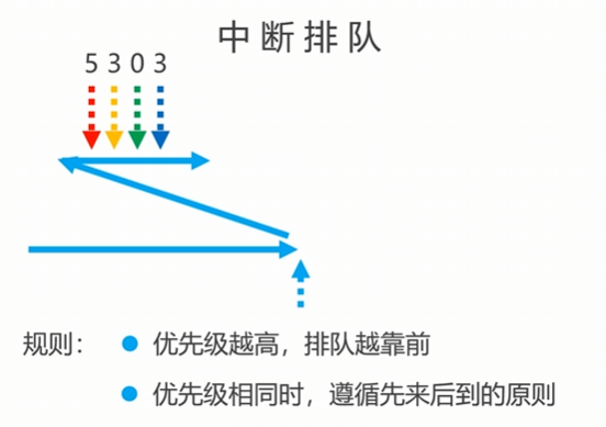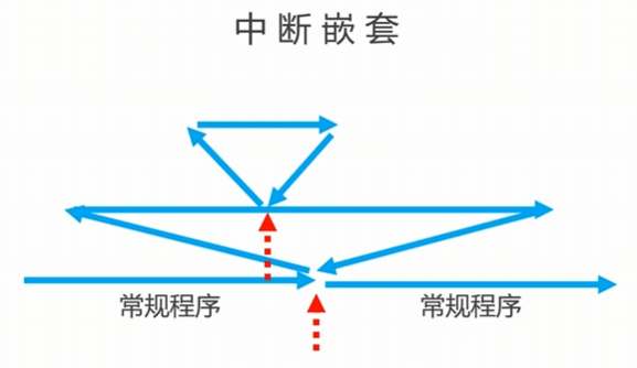 在中断响应函数执行时,如果来了个新中断,它比旧中断更加紧急来不及排队,这时就要打断旧中断: