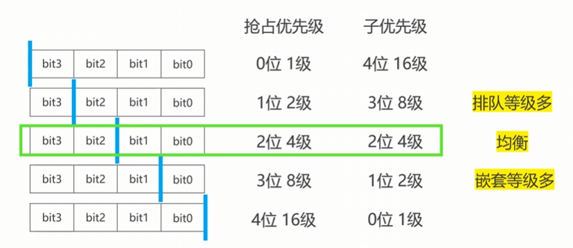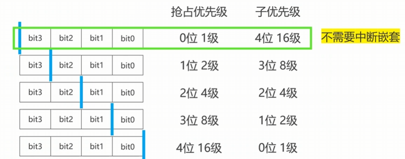 而这四个方快就是中断优先级,蓝色虚线是可以移动的,用来中断优先级分组: