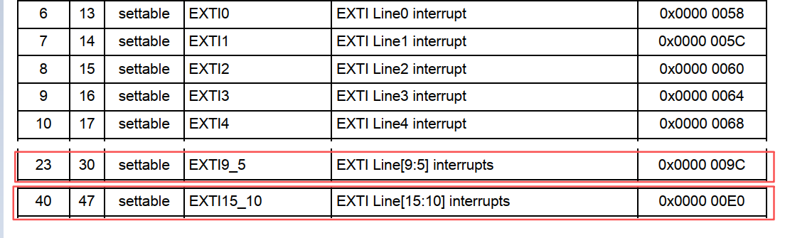EXTI第10-15线的中断被合并到了EXTI15_10寄存器中.