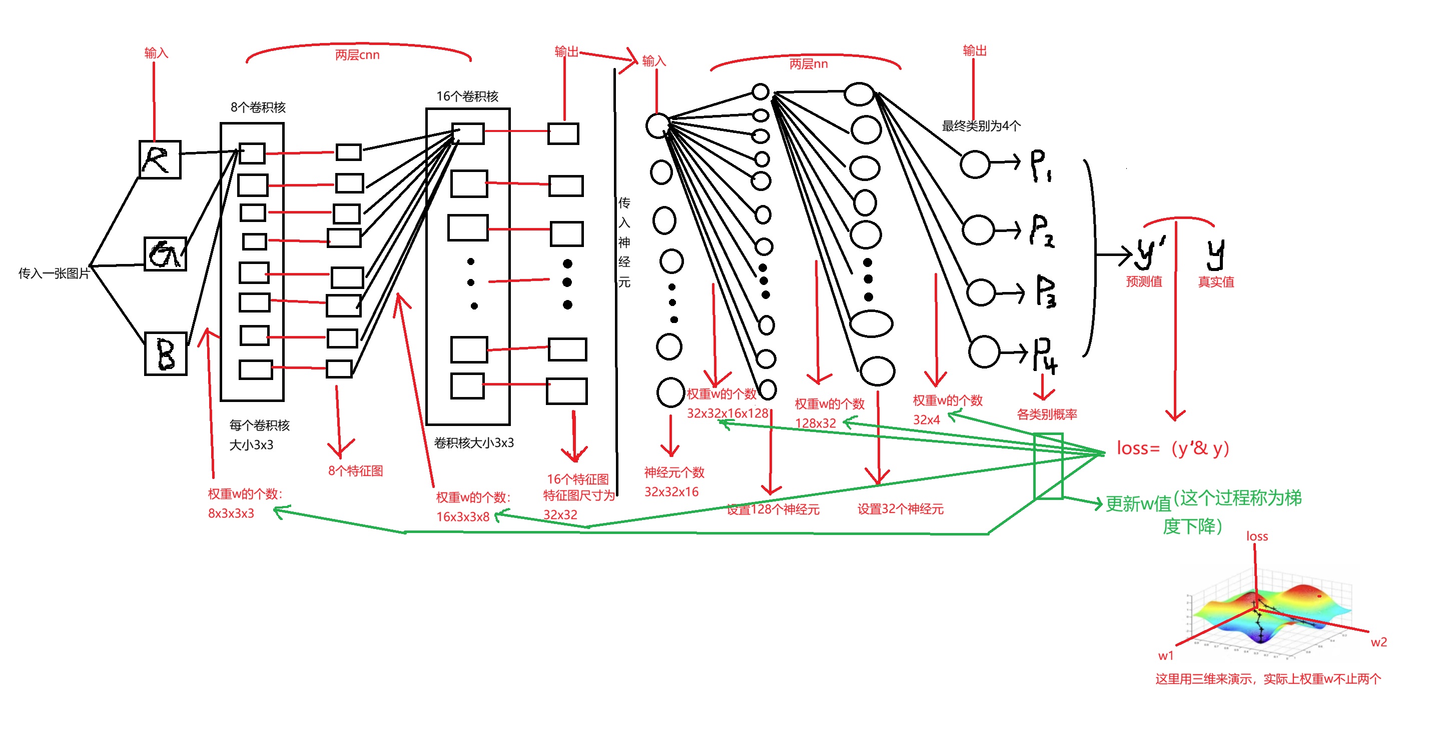 - cnn和nn不同的是,权重w的个数要考虑特征图的尺寸