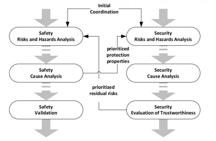 基于前一节所述原因,可以认为需要建立分离的功能安全和网络安全工程流程、角色模型及接口。