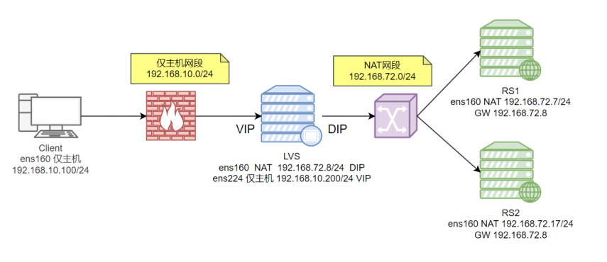 | lvs | lvs | redhat 9.7 | 仅主机 NAT | 192.168.10.200/24 VIP 192.168.72.8/24 DIP |