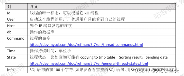 show processlist 用于显示用户运行线程。可以根据id号kill线程: