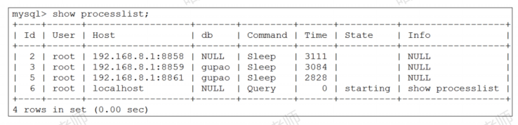 (2)show processlist 显示用户运行线程