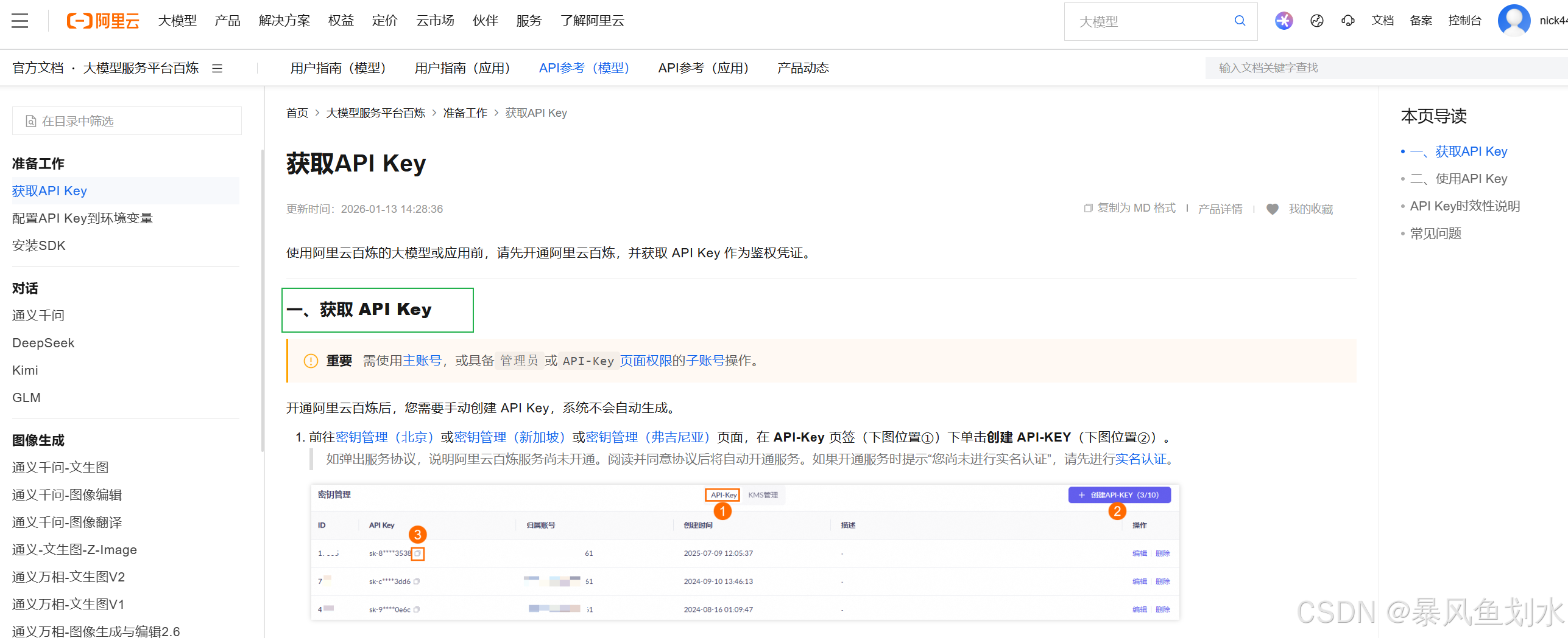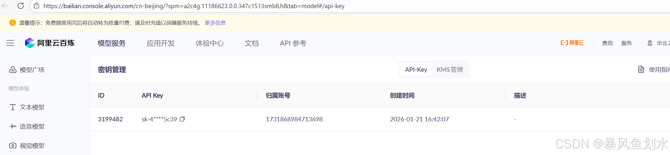 - 如下图所示首先获取API Key,