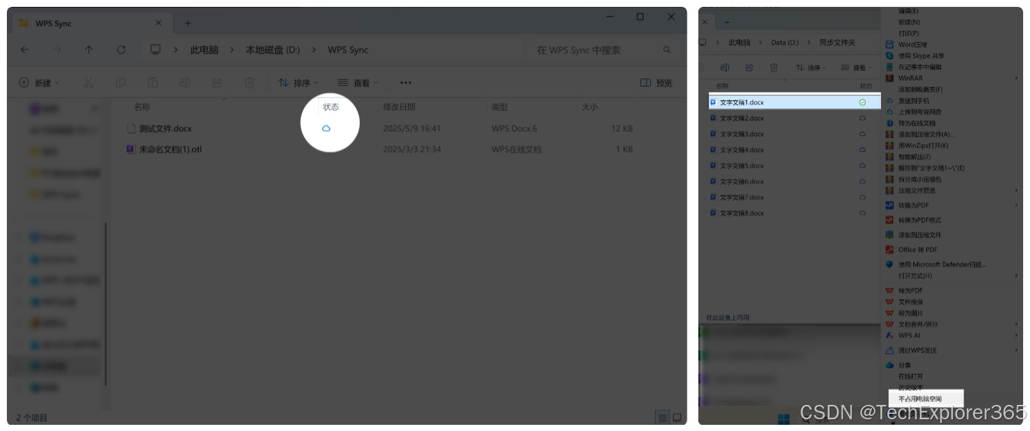 ◦ 文件状态为蓝色云朵图标,即代表文件仅存储于云端,此时不占电脑空间