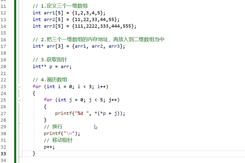11.指针高级-利用指针遍历第二种格式的二维数组