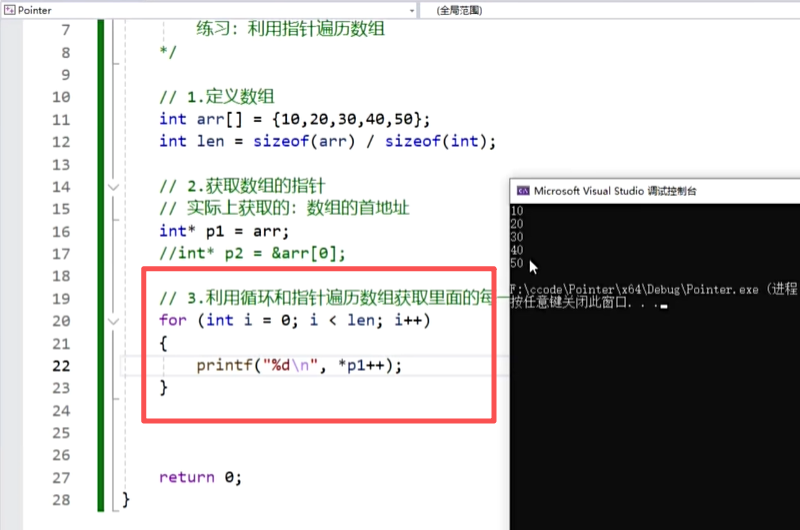 10.指针高级-利用指针遍历第一种格式的二维数组