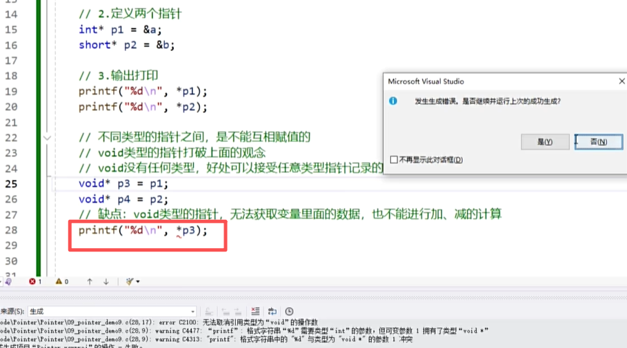 void类型的指针无法获取指针里面的数据,改成char类型的指针,因为char类型的指针只占一个字节