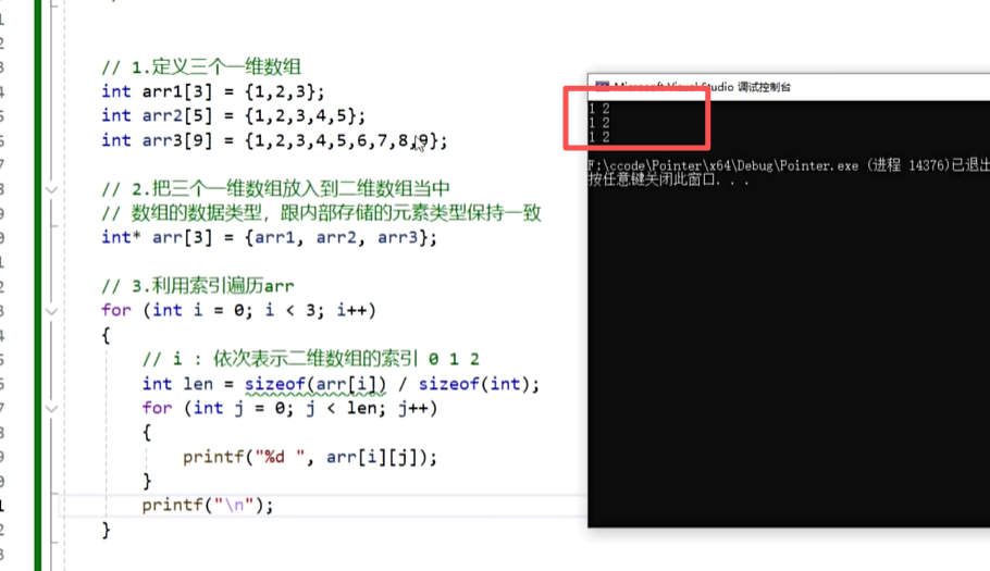 9.指针高级-利用索引遍历第二种格式的二维数组