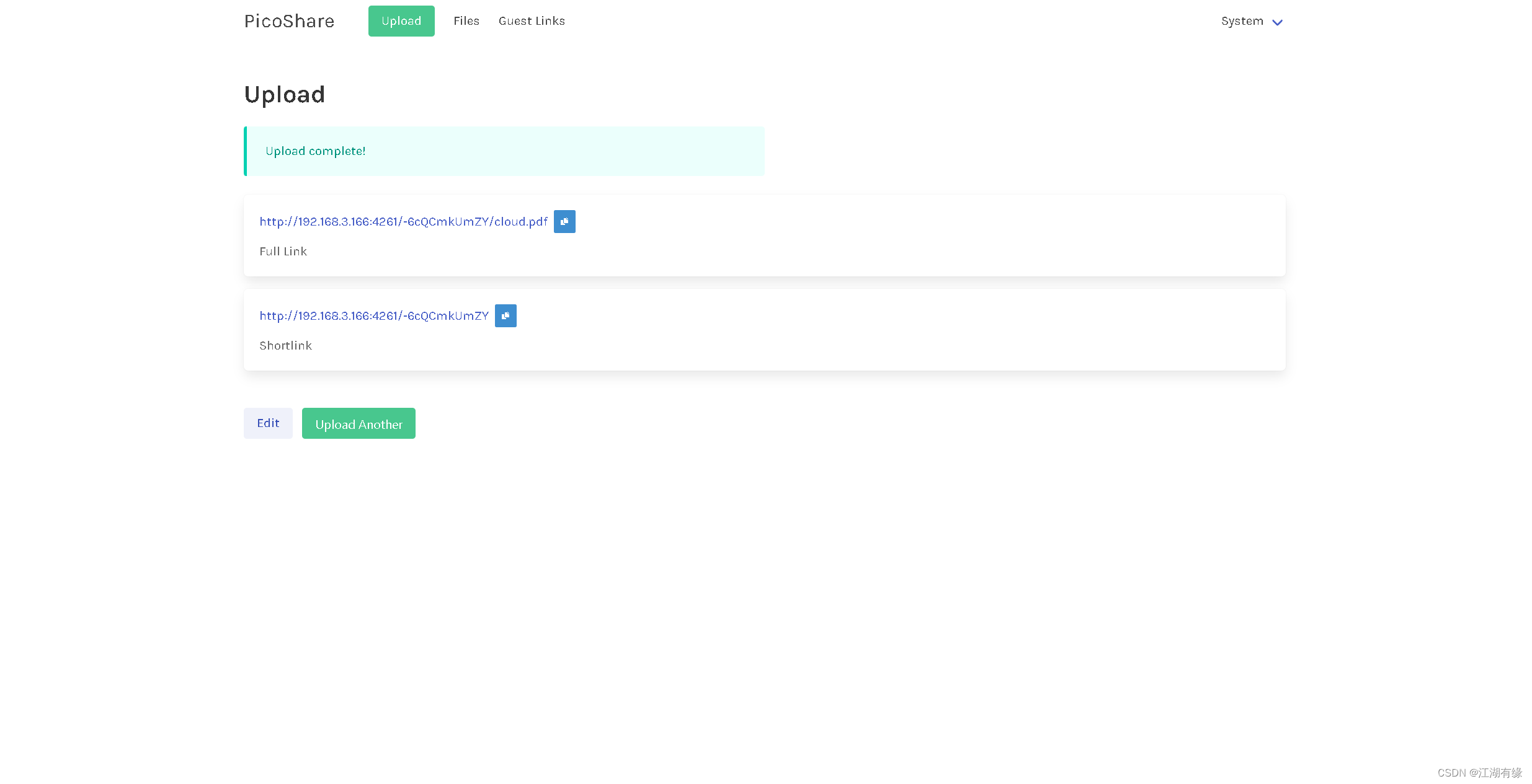 PicoShare是一款轻量级的文件共享工具,为我们的日常工作与学习提供了很大的便利。它具有直观简洁的界面,操作也非常简单,能够快速上传文件。特别是访客链接的功能,使得我们可以方便地分享临时文件,免去了其他人的登录步骤,非常实用。此外,PicoShare能够快速打开共享文件,共享链接的有效期还可以自定义,根据需要设置链接的过期时间,非常符合我们的需求。总的体验下来,PicoShare是一款优秀的文件共享工具,值得一用!