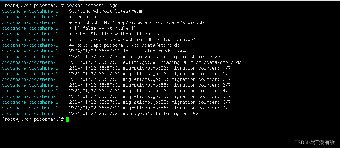 检查PicoShare容器状态,确保PicoShare容器正常启动。