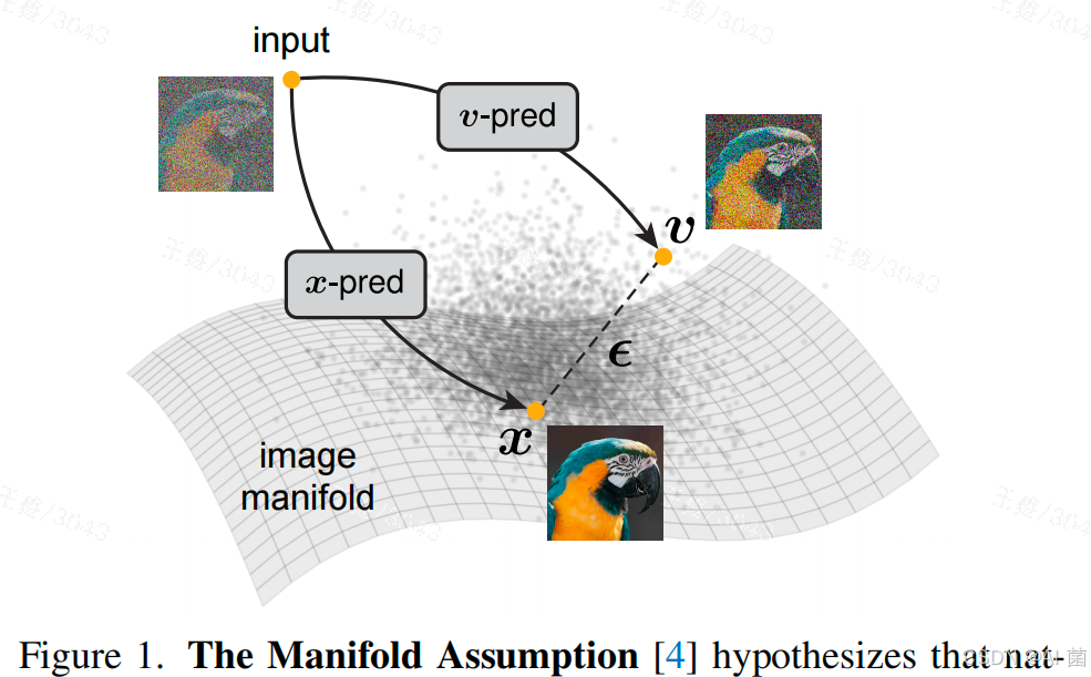 同时,机器学习领域的流形假设指出,自然数据(如图像)本质上分布在低维流形上,而噪声和含噪量(如流速v)则分布于整个高维空间。现有扩散模型在像素级等高维空间建模时,常受维度灾难困扰,需通过密集卷积、小补丁分割、额外跳跃连接等复杂设计缓解问题,却牺牲了模型的简洁性和通用性。因此,回归"直接预测干净数据"的核心思路,构建简洁、自包含的高维数据生成模型成为研究痛点。