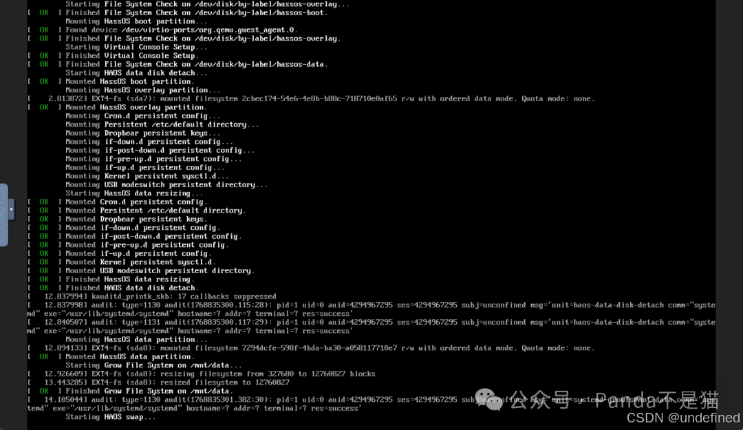 当系统完成所有预装集成的部署后,HA会自动进行一次重启。当你看到界面刷新成下图所示的状态时,意味着底层环境的准备工作已经大功告成,最艰难的部署环节结束了!