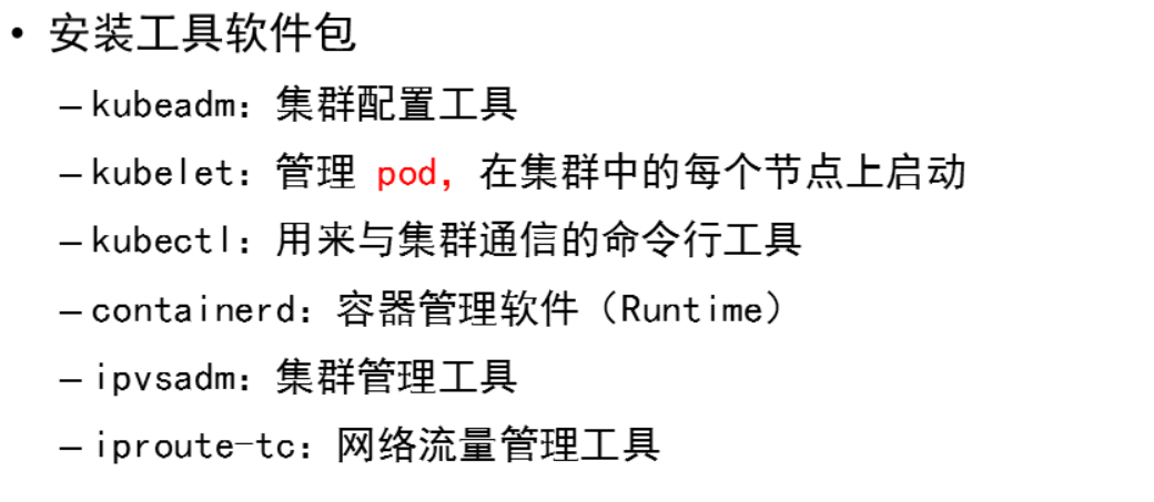 root@master \~\]# sed '/swap/d' -i /etc/fstab \[root@master \~\]# swapoff -a \[root@master \~\]# dnf remove -y firewalld-\* ##### 3、安装软件包 \[root@master \~\]# vim /etc/hosts > 192.168.88.240 harbor > > 192.168.88.50 master > > 192.168.88.51 node-0001 > > 192.168.88.52 node-0002 > > 192.168.88.53 node-0003 \[root@master \~\]# **dnf install -y kubeadm kubelet kubectl containerd.io ipvsadm ipset iproute-tc**  \[root@master \~\]# **containerd config default \>/etc/containerd/config.toml** \[root@master \~\]#**vim /etc/containerd/config.toml** > 61: sandbox_image = "harbor:443/k8s/pause:3.9" > > 125: SystemdCgroup = true > > 154 行新插入: > > \[plugins."io.containerd.grpc.v1.cri".registry.mirrors."docker.io"