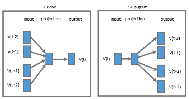 - CBOW(Continuous Bag of Words,连续词袋模型) :用 "上下文词" 预测 "中心词"。适用于小型数据集。