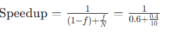 升级比例 f:计算部分是可以被升级加速的,占总时间的 40% → f=0.4