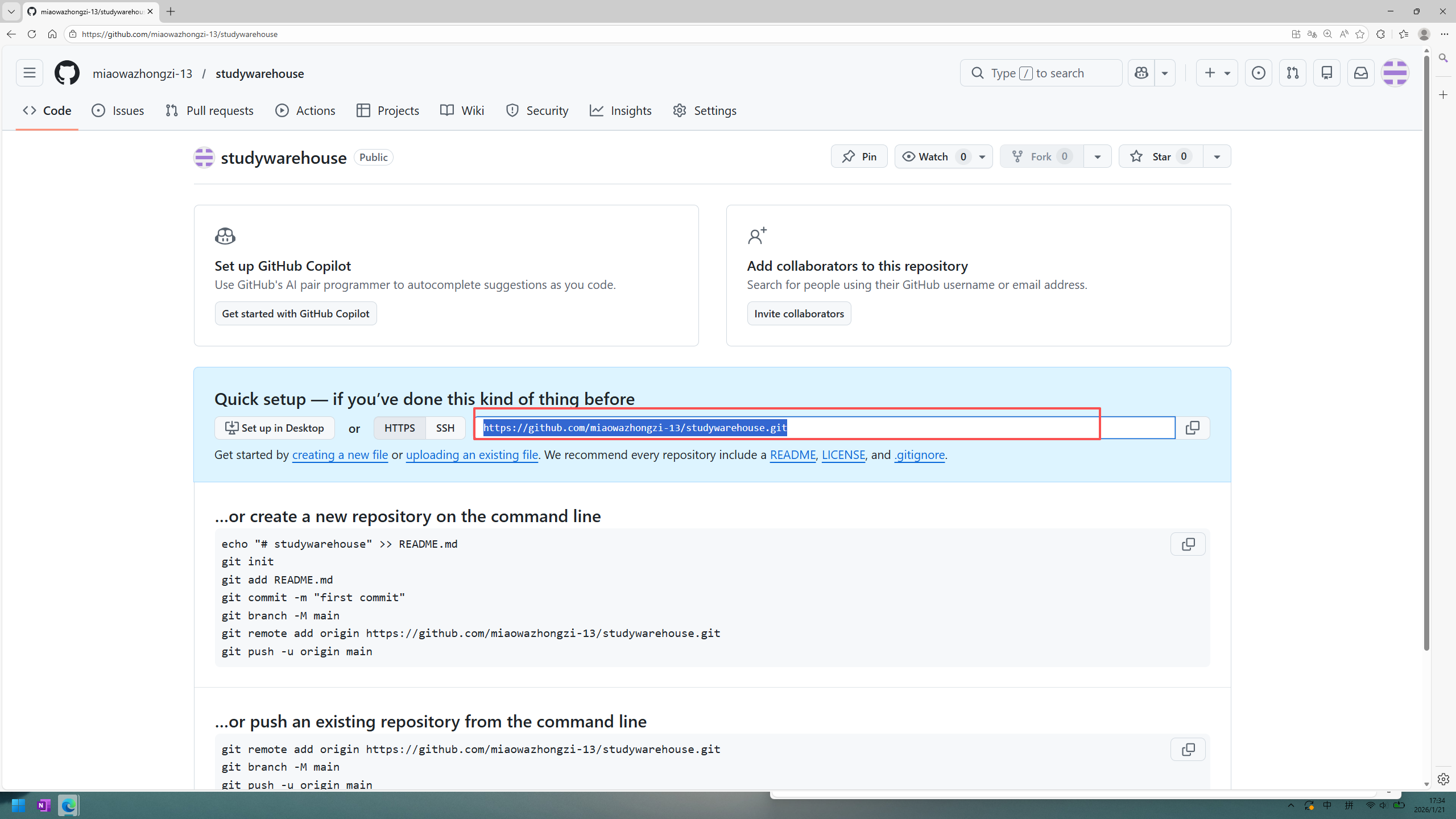 在github中找到你仓库的URL