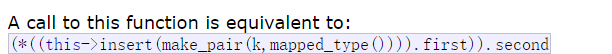 return (*((this->insert(make_pair(k,mapped_type()))).first)).second;//插入时的匿名对象默认值为0