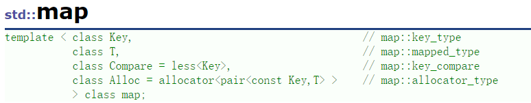 Compare: 比较器的类型,map中的元素是按照key来比较的,缺省情况下按照小于来比较,一般情况下(内置类型元素)该参数不需要传递,如果无法比较时(自定义类型),需要用户自己显式传递比较规则(一般情况下按照函数指针或者仿函数来传递)