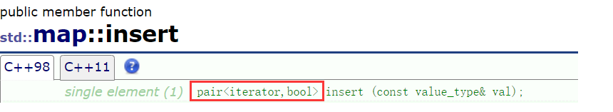 正常来说如果insert插入成功了返回true,已经存在此时插入失败了返回false,但是我们可以看到insert的返回值是一个pair: