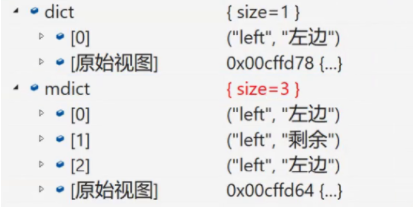 dict["left"] = "左边、剩余";//已经存在所以只是修改