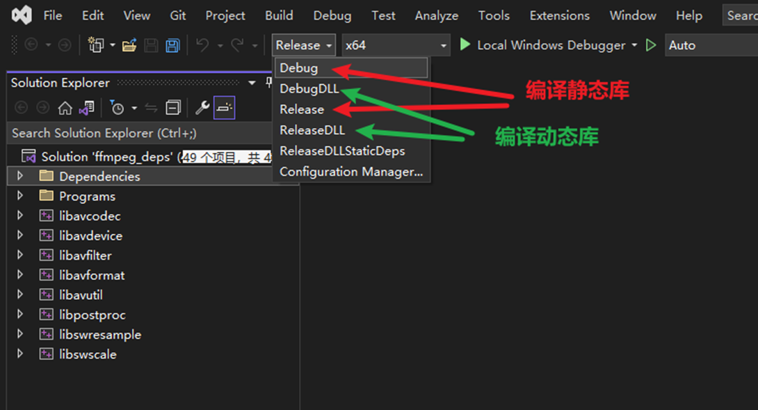 - 用VS2019打开source\FFmpeg\SMP\ffmpeg_deps.sln解决方案文件。
