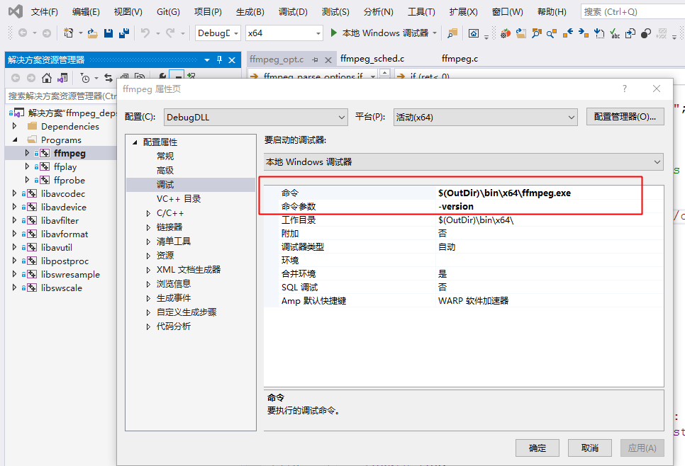 可执行程序在msvc\bin\x64目录下,可通过运行ffmpeg.exe -version验证是否成功。