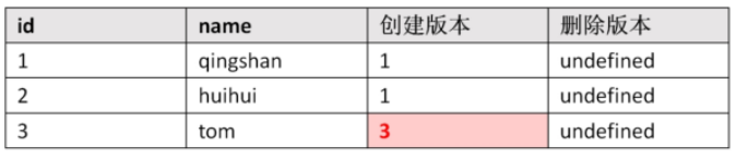 此时多了一条数据,它的创建版本号为当前事务编号3