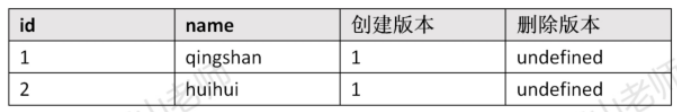 MVCC査找规则:只能査找创建时间小于等于当前事务ID的数据、和删除时间大于当前事务ID的行(或未删除),即可以查到第二个事务开始之后删除的数据。huihui 这条数据依然可以查询到。