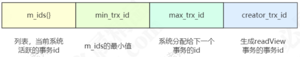 - m_ids :生成ReadView时,当前系统中活跃的、读写事务的事务id列表。