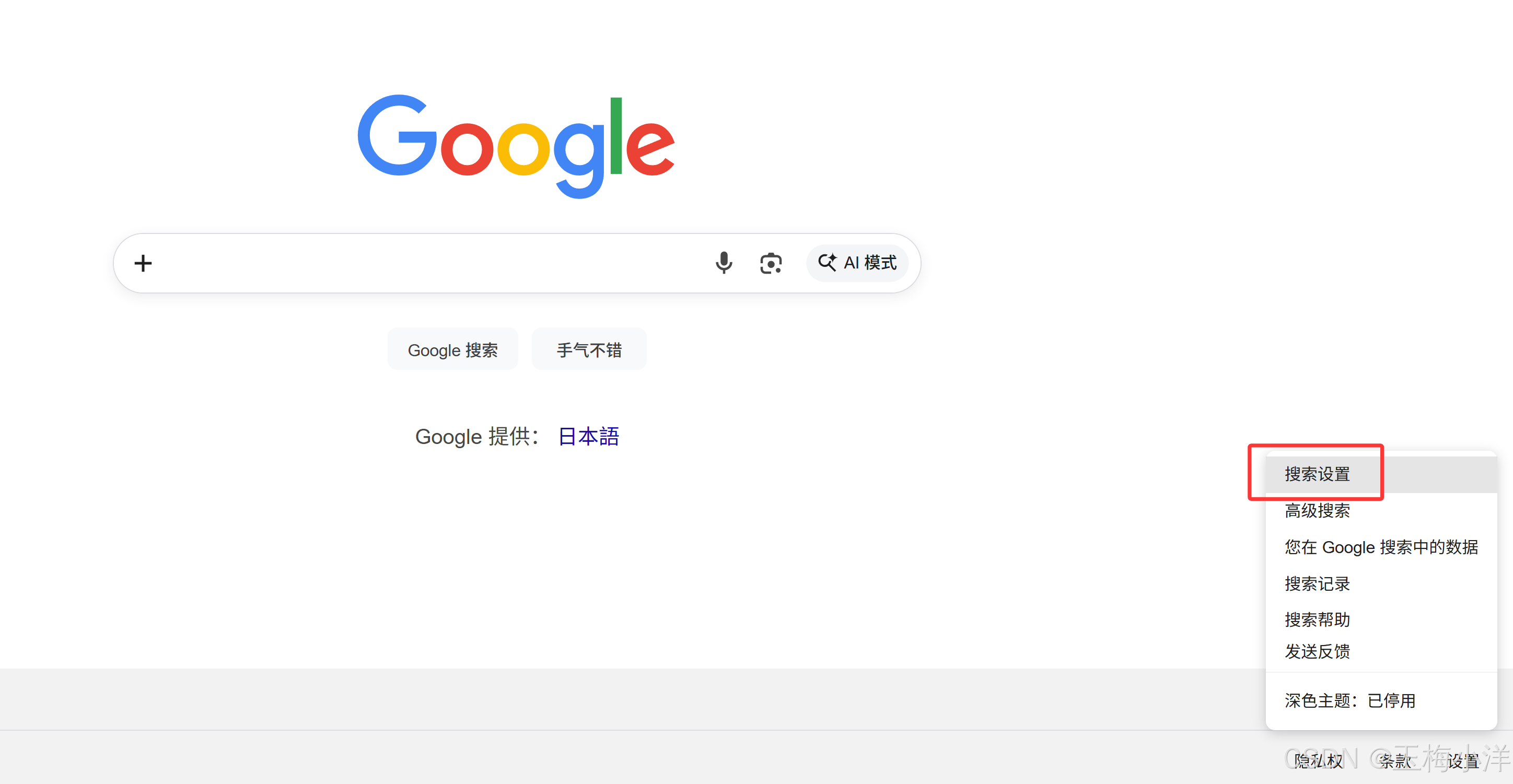 打开谷歌浏览器,进入 Google 搜索主页(https://www.google.com)。