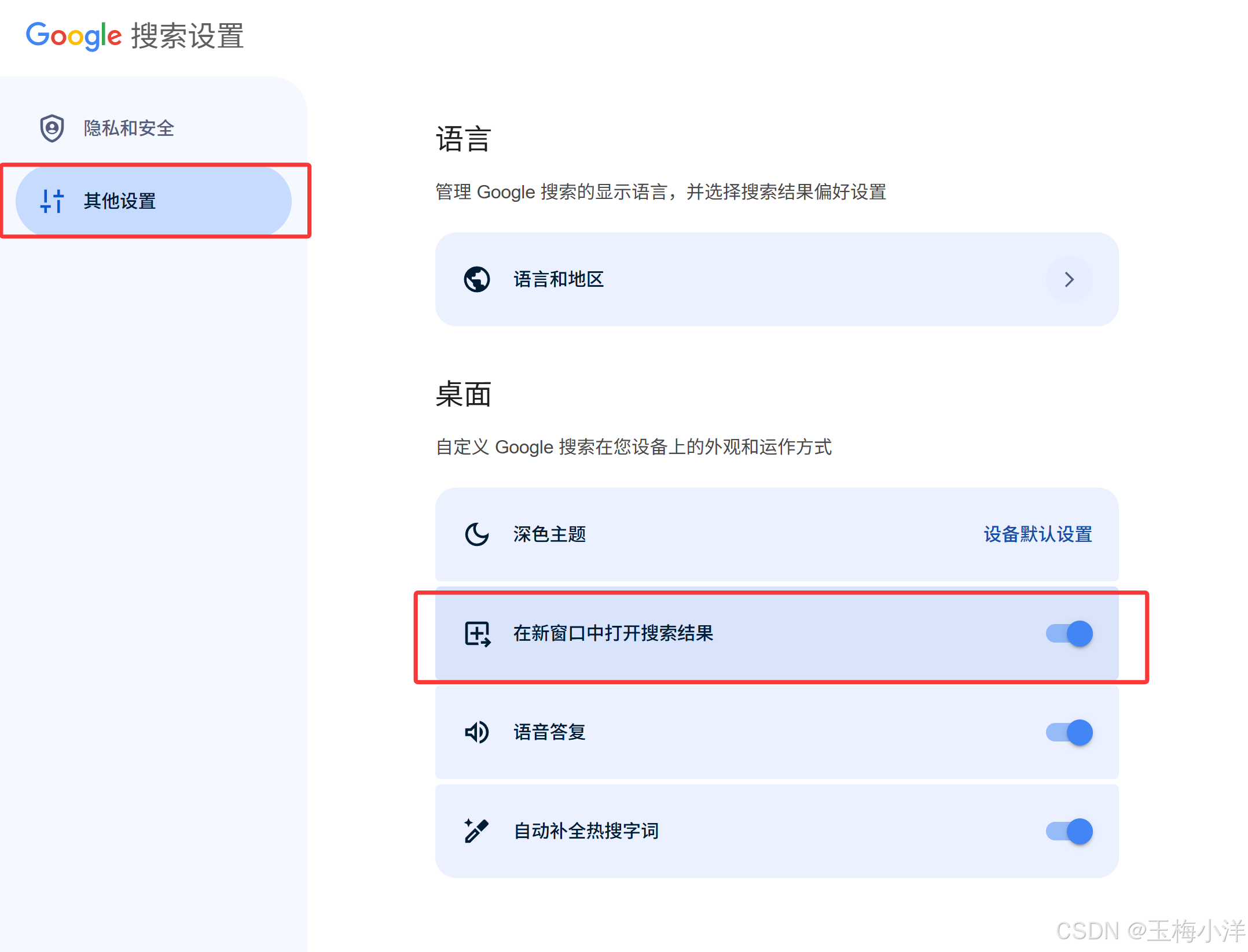找到「在新窗口中打开搜索结果」选项,点击勾选启用(部分版本显示为"在新标签页中打开搜索结果")。