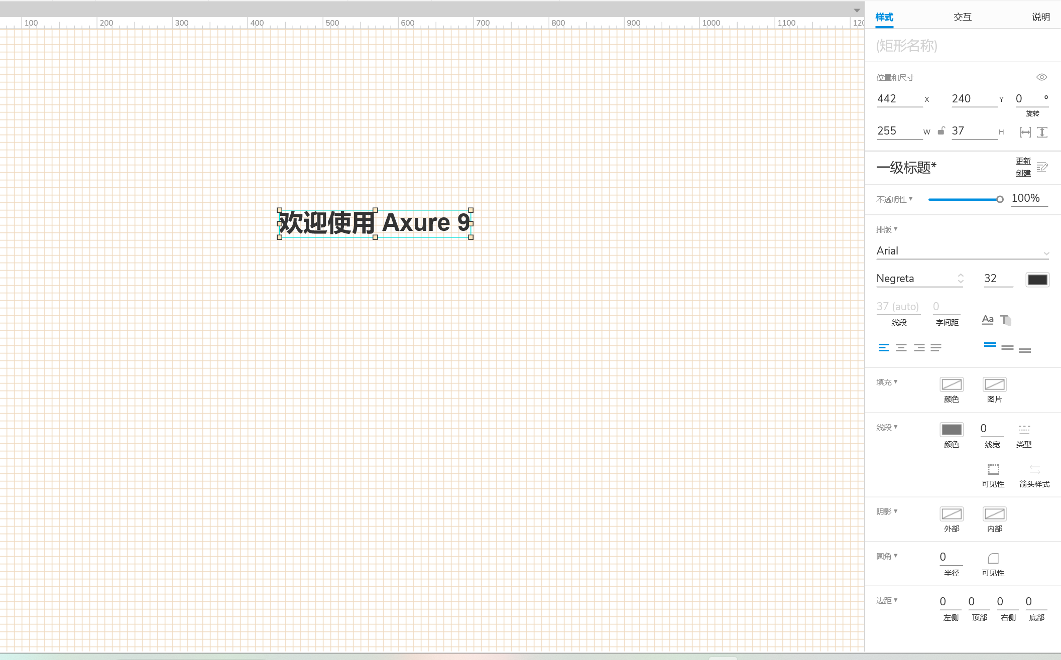 - 右侧面板:交互、样式、说明属性