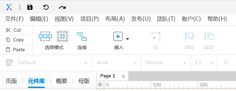 - 左侧面板:元件库、页面大纲、组件库