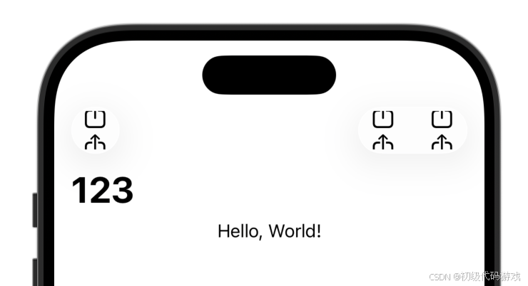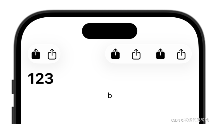 上面的代码用VStack组合了两个图标,超出了导航栏高度,所以显示不全。正常情况应该用HStack来组合多个按钮,下面的代码增加了绑定来显示哪个按钮被点击: