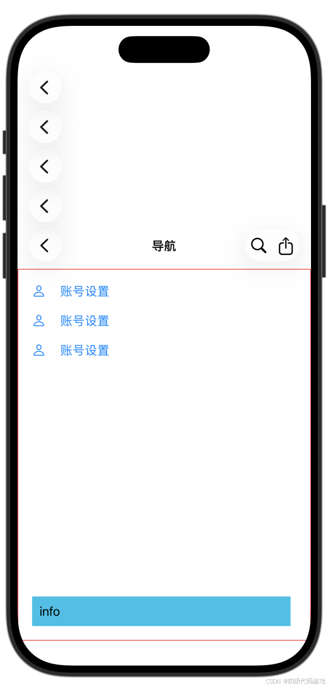 导航栏前后按钮都是视图,上面的代码用了一个稍微复杂的视图演示了视图超出导航栏大小时的效果。