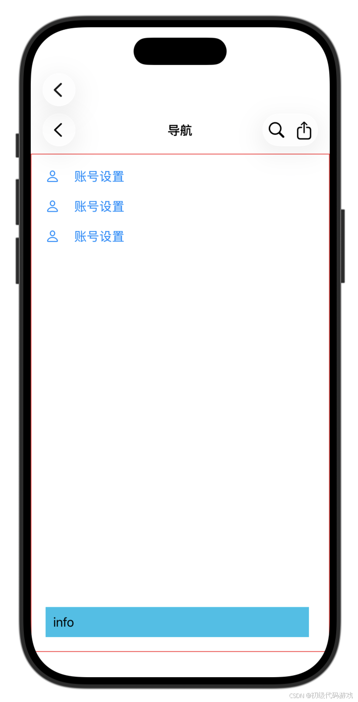 通过导航进入和独立页面的区别是上面有个返回按钮(和导航页我们自己做的图标看起来是一样的,但是这个是系统提供的),点击返回按钮可以回到导航页面。