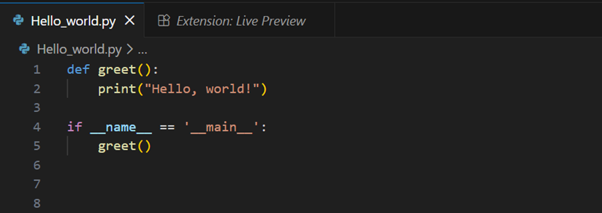 创建Python脚本文件Hello_world.py,编写代码,如下图。