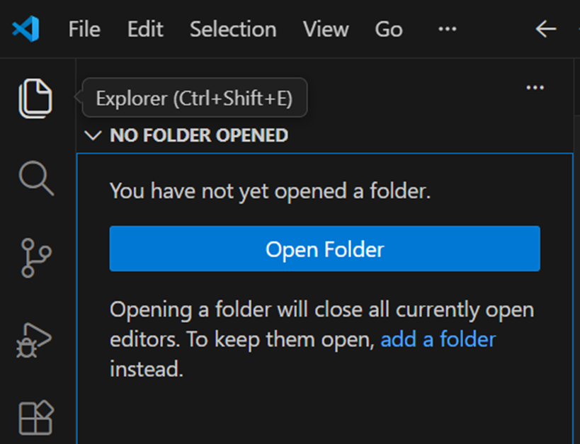 选择点击左侧导航栏上的Explorer(资源浏览器),选择打开的文件夹。