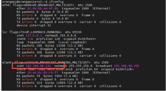 登录后就是这样的,这个最后登录板子的ip地址显示与我们主机的ip地址一样就可以了