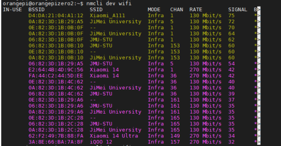4.1、在串口连接下通过nmcli dev wifi 扫描出附近所有的wife