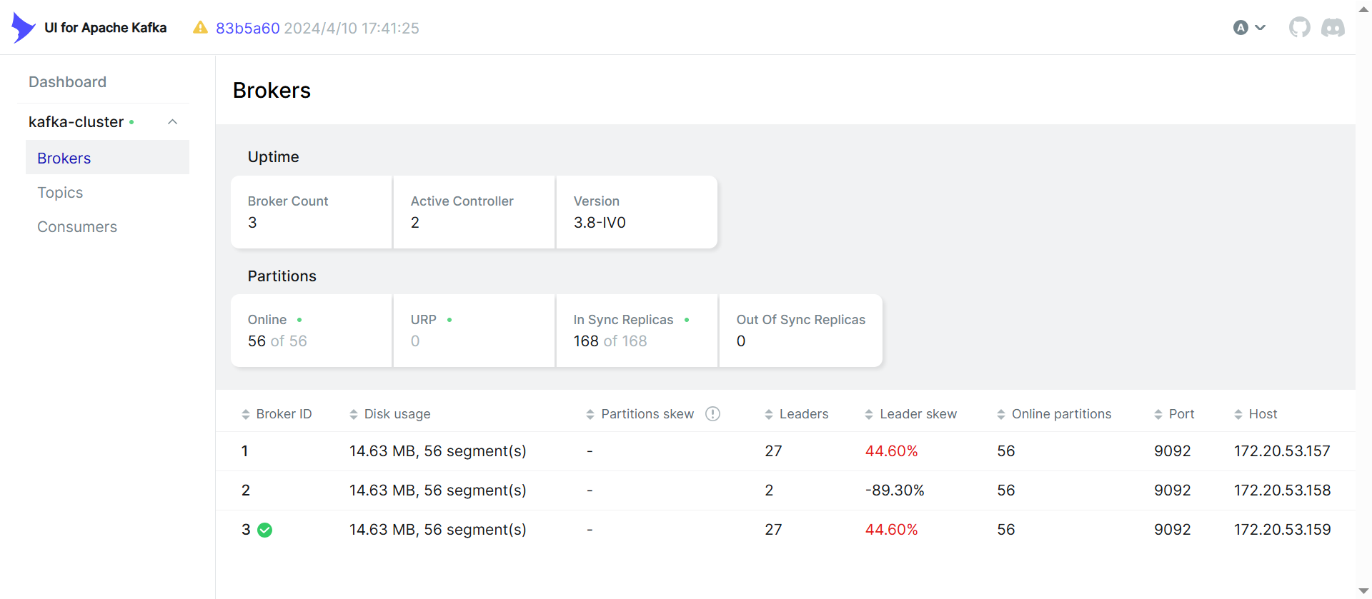 hostname: kafka-157 # 容器 hostname,用于集群识别
