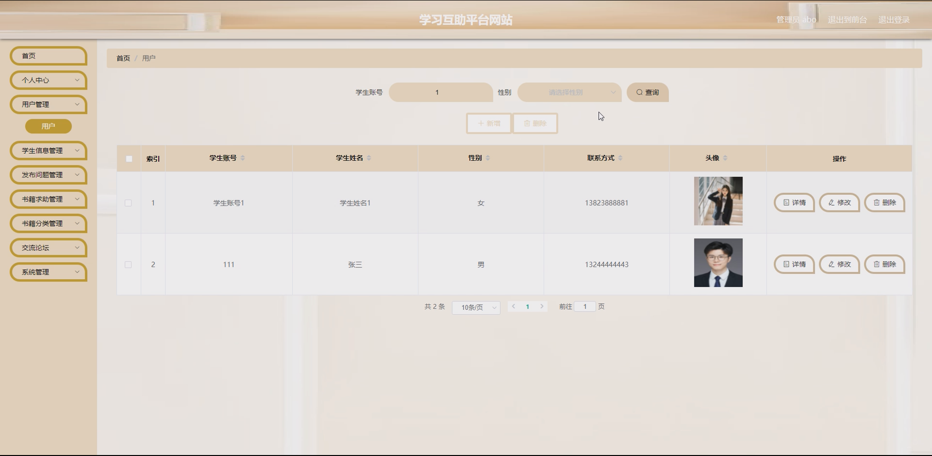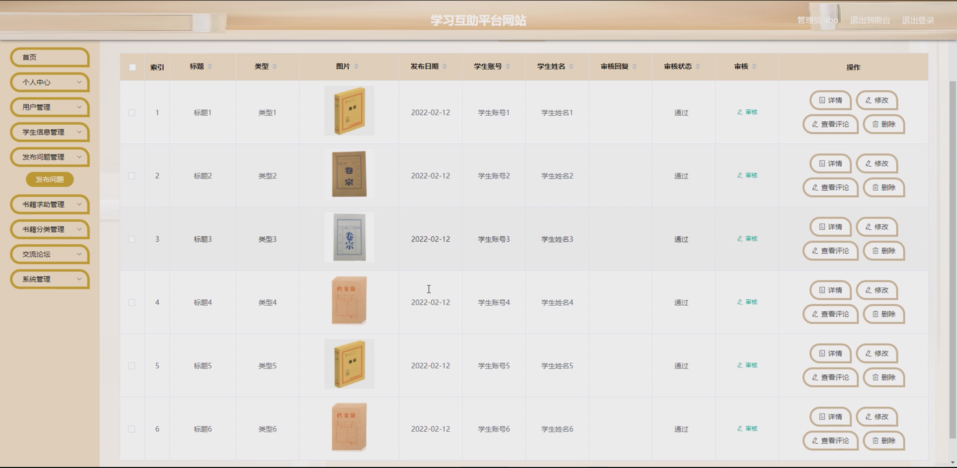SSM(Spring+SpringMVC+MyBatis)框架作为JavaWeb开发的主流轻量级框架,具有耦合度低、易扩展、开发效率高、稳定性强等优势,能够快速构建适配校园场景的Web应用。基于此,开发一套SSM学习互助平台网站,整合学生管理、问题发布、书籍求助、书籍分类等核心功能,为学生提供便捷的学习互助渠道,具有重要的现实意义。