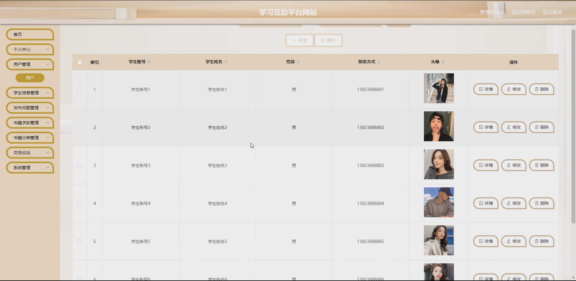 本系统的开发能够有效解决学生学习互助中的痛点问题,为学生搭建一个便捷、高效的学习交流平台。通过核心功能的实现,让学生能够快速发布学习问题、求助所需书籍,通过书籍分类快速检索资源,促进学生之间的学习交流与资源共享;同时简化平台管理流程,提升学习互助的效率和质量,助力学生提升学习效果,丰富校园数字化学习生态。