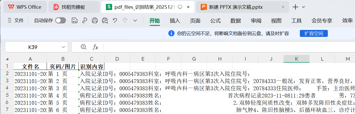 输出:md、excel文件,包含每个文件的识别结果