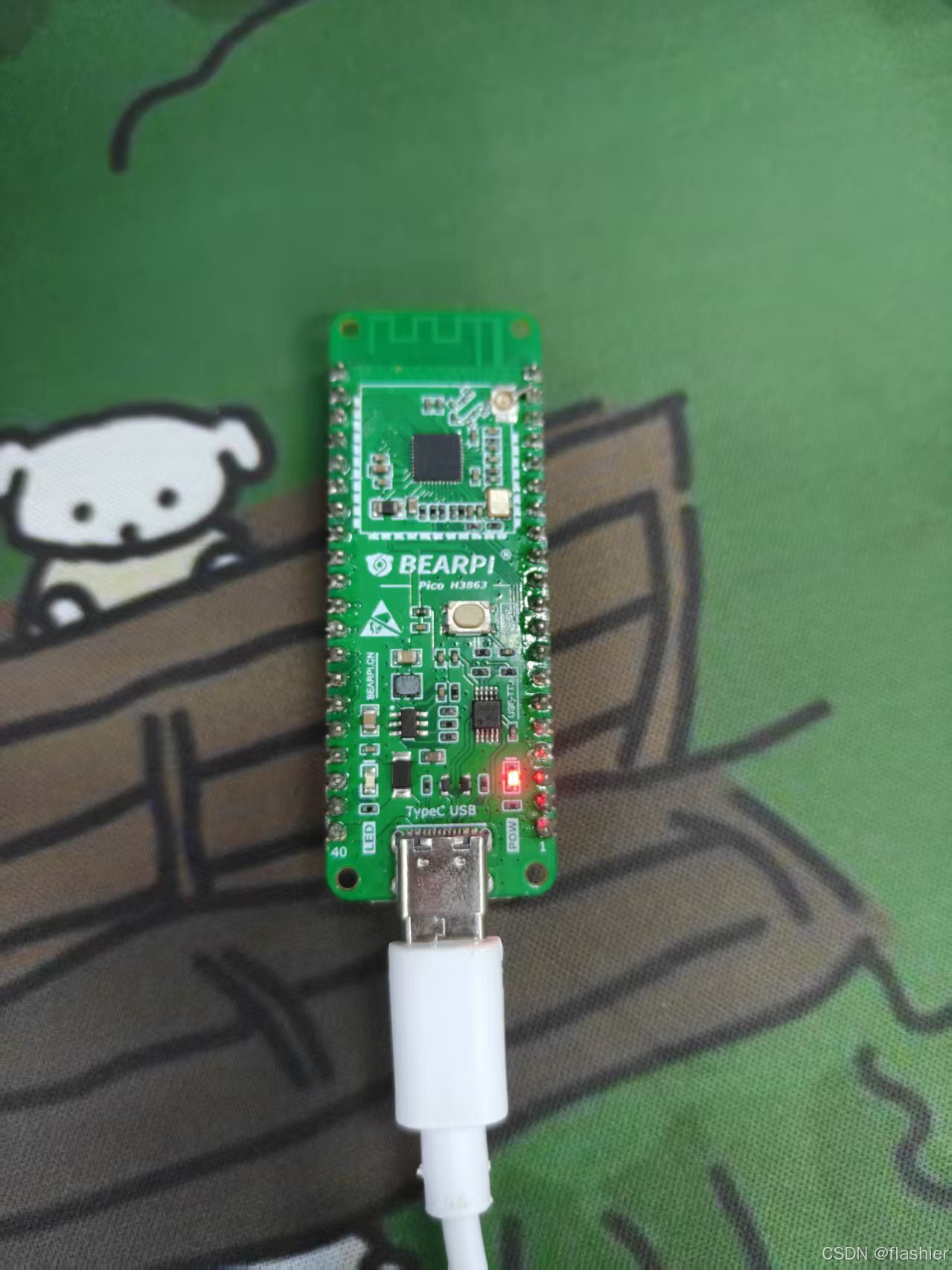 用Type-C线连接电脑与开发板,开发板上红灯(电源灯)亮起则表明已连接成功