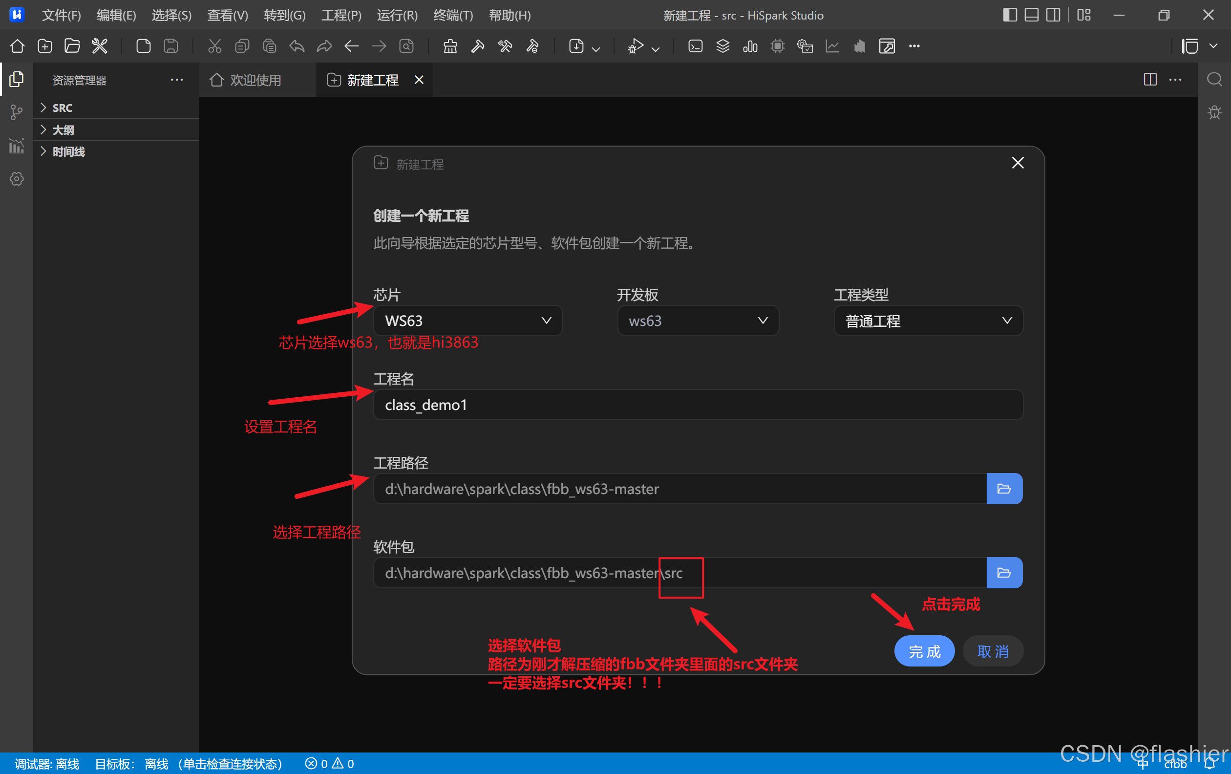 下载 HiSparkStudio IDE 和 fbb_ws63 代码仓,并自行安装HiSparkStudio,导入 fbb_ws63 代码仓,编译案例代码验证。