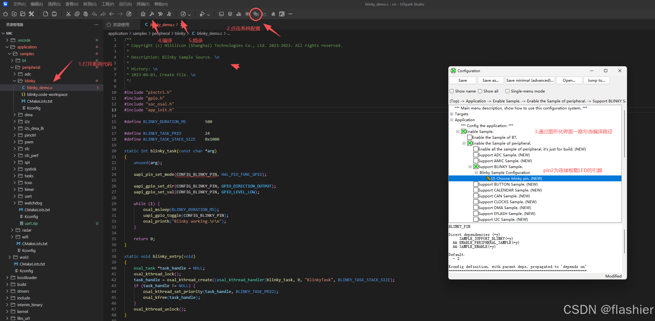 - 按图中步骤,编译烧录